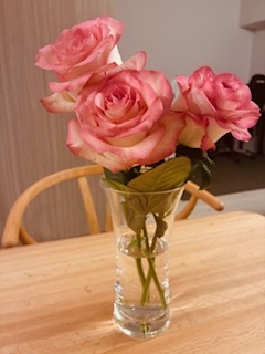 我が家の倹約的なお夕食もバラが背景にあるだけでなんか洒落て見える。